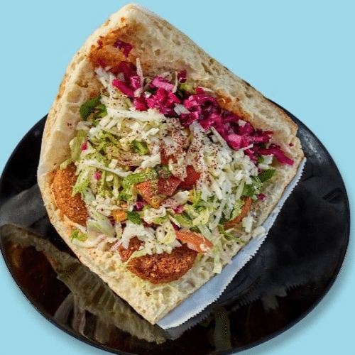 mit Drehspießfleisch, Zwiebeln und Peperoni